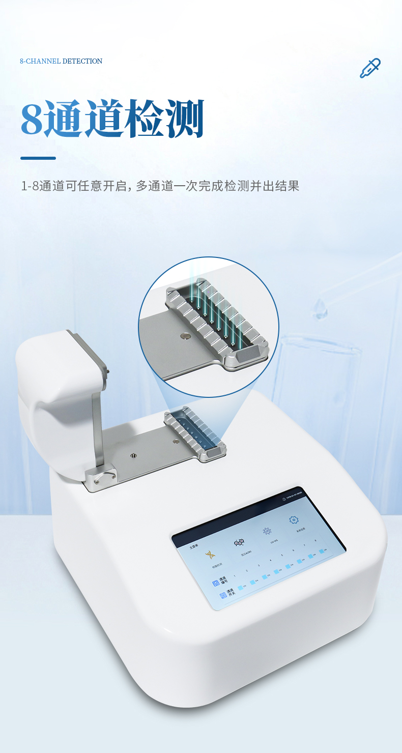 多通道檢測:1-8通道可任意開啟,多通道一次完成檢測并出結(jié)果;