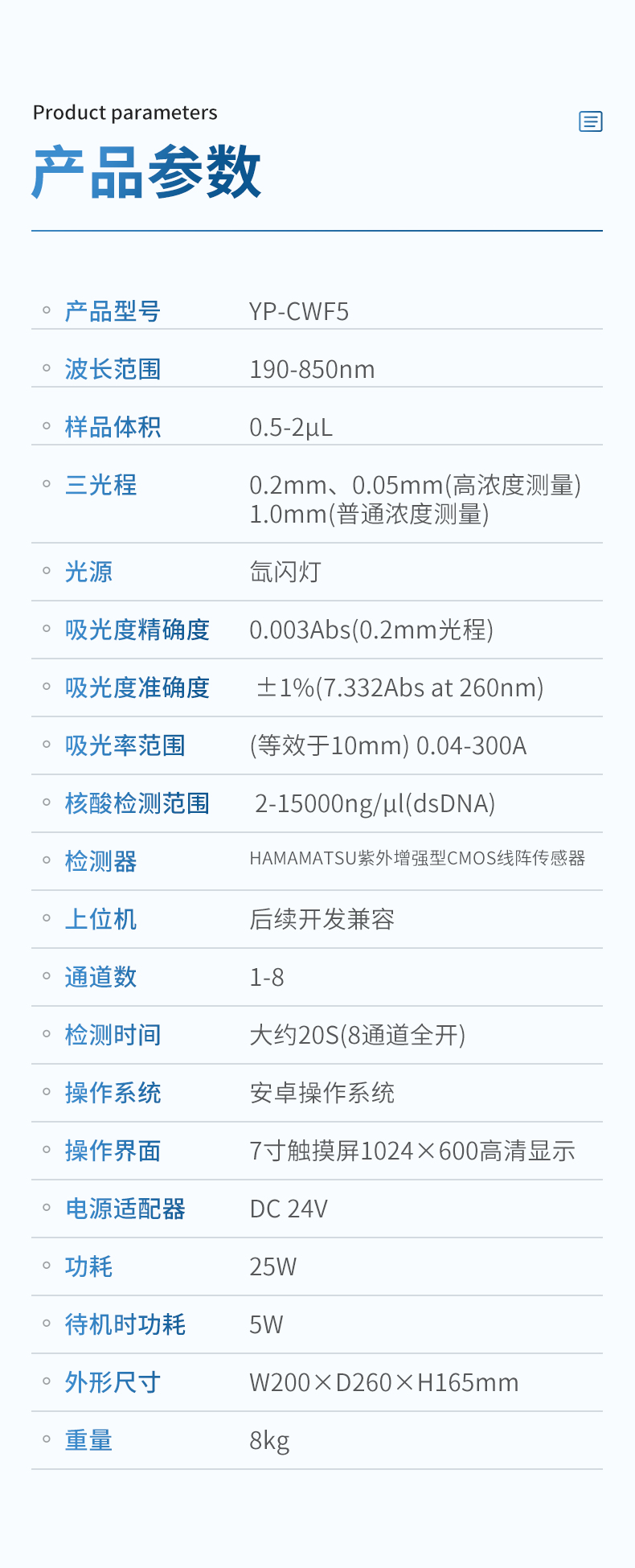 吸光度精確度0.003Abs(0.2mm光程)
