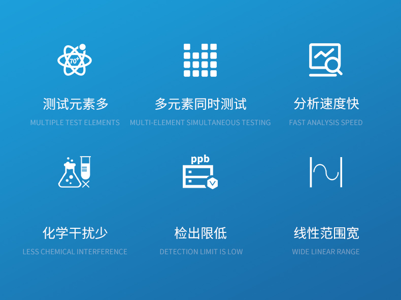 4、檢出限低,絕大多數元素可達 ppb 級。