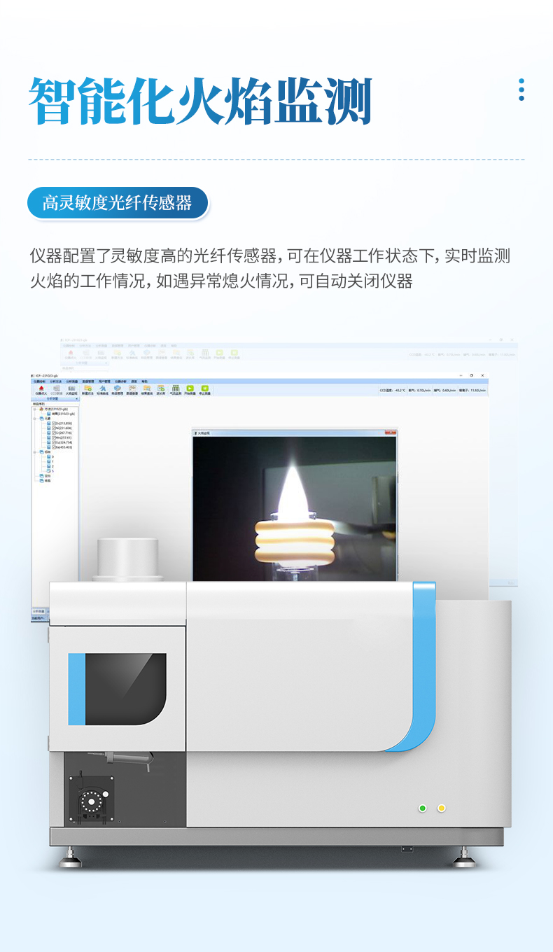 4、智能化的火焰監視功能:儀器配置了靈敏度極高的光纖傳感器,可在儀器工作狀態下,實時監測火焰