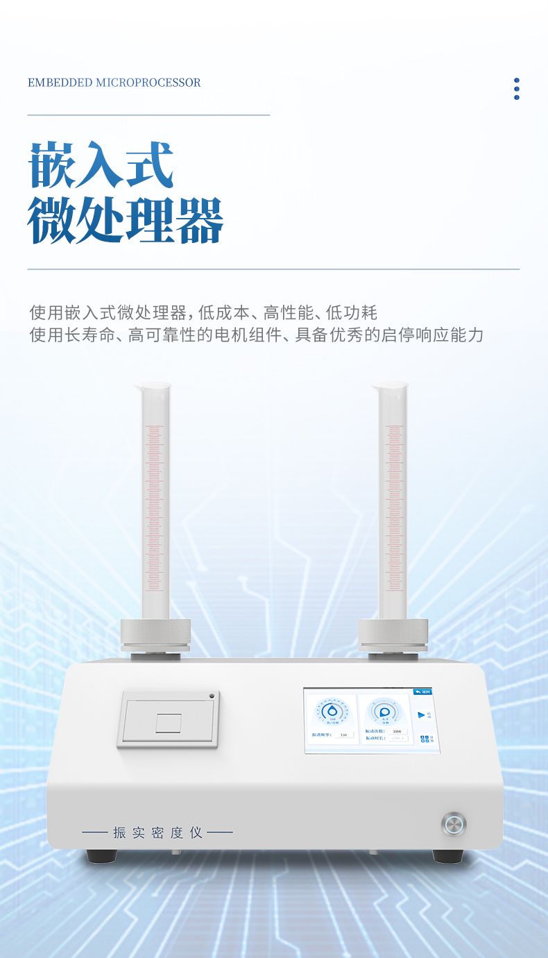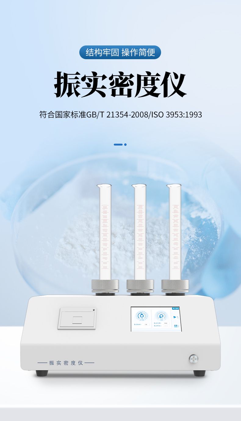 振實(shí)密度儀是一種通過模擬實(shí)際工況中的振動條件,精確測定粉末或顆粒材料在振實(shí)狀態(tài)下密度的高精度儀器。其核心功能是評估材料在壓實(shí)過程中的體積變化,為工業(yè)生產(chǎn)、研發(fā)和質(zhì)量控制提供關(guān)鍵數(shù)據(jù)支持。