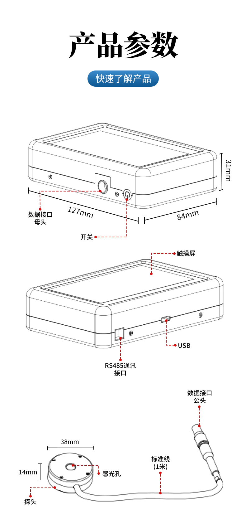 6.一機多用,同一主機可根據不同光源搭配使用不同受光器;