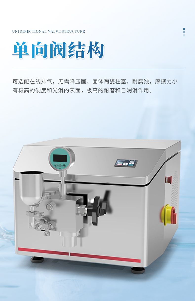 6、物料控溫:要求均質閥帶控溫夾套與控溫介質出入接頭、連接管路,可實現(xiàn)在線控溫,出料溫度控制在 -5℃~100 ℃ (根據物料要求不同而定);實現(xiàn)高壓均質部件恒溫控制,實現(xiàn)設備與物料同時控溫。保證物料生物學活性。