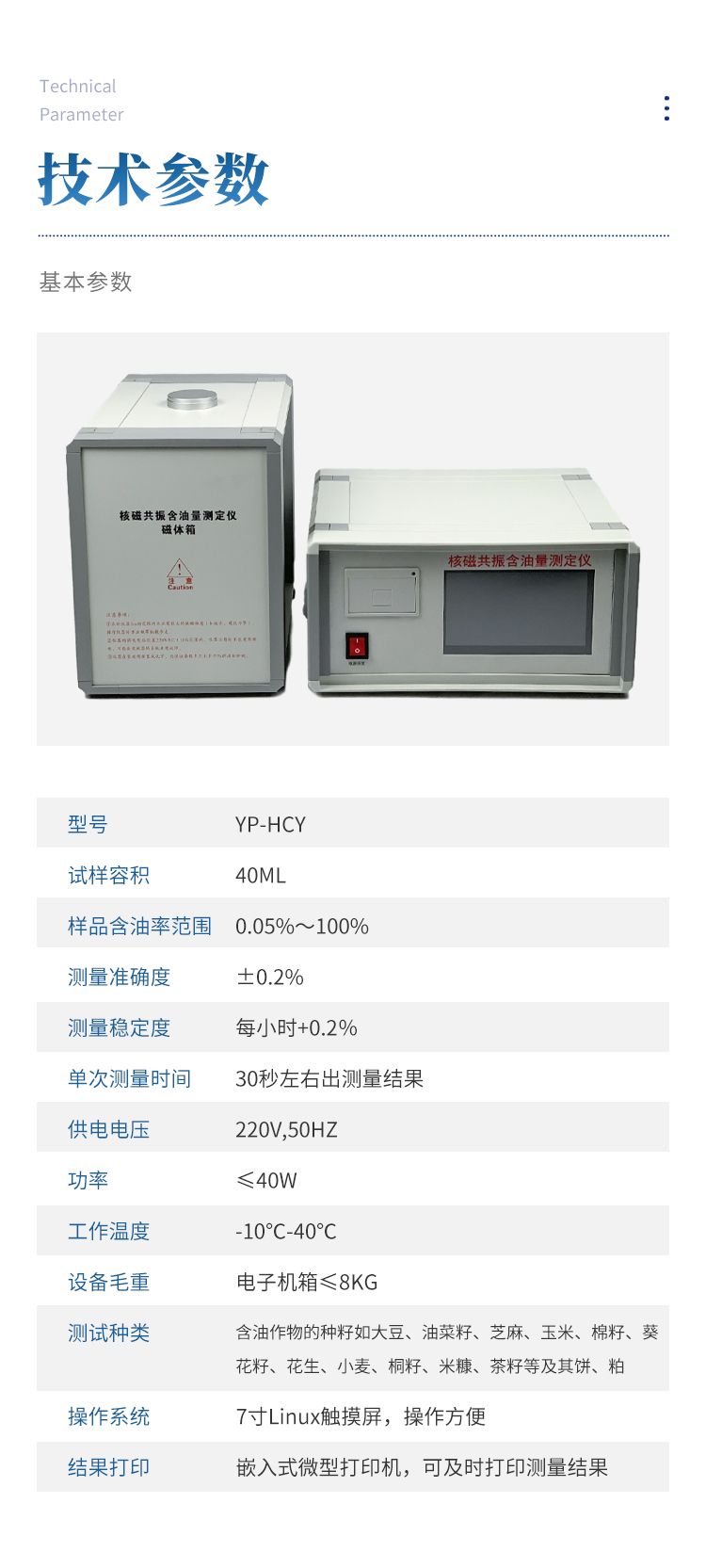 8、符合GB/T 15690-2008,《植物含油 含油量測定 連續(xù)波低分辨率核磁共振測定法(快速法)》的要求;