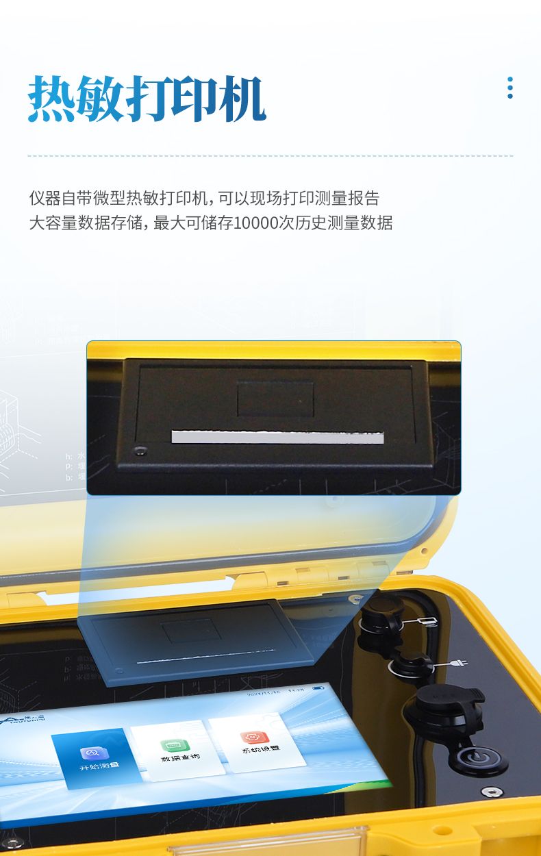 8、儀器自帶微型熱敏打印機,可以現場打印測量報告;