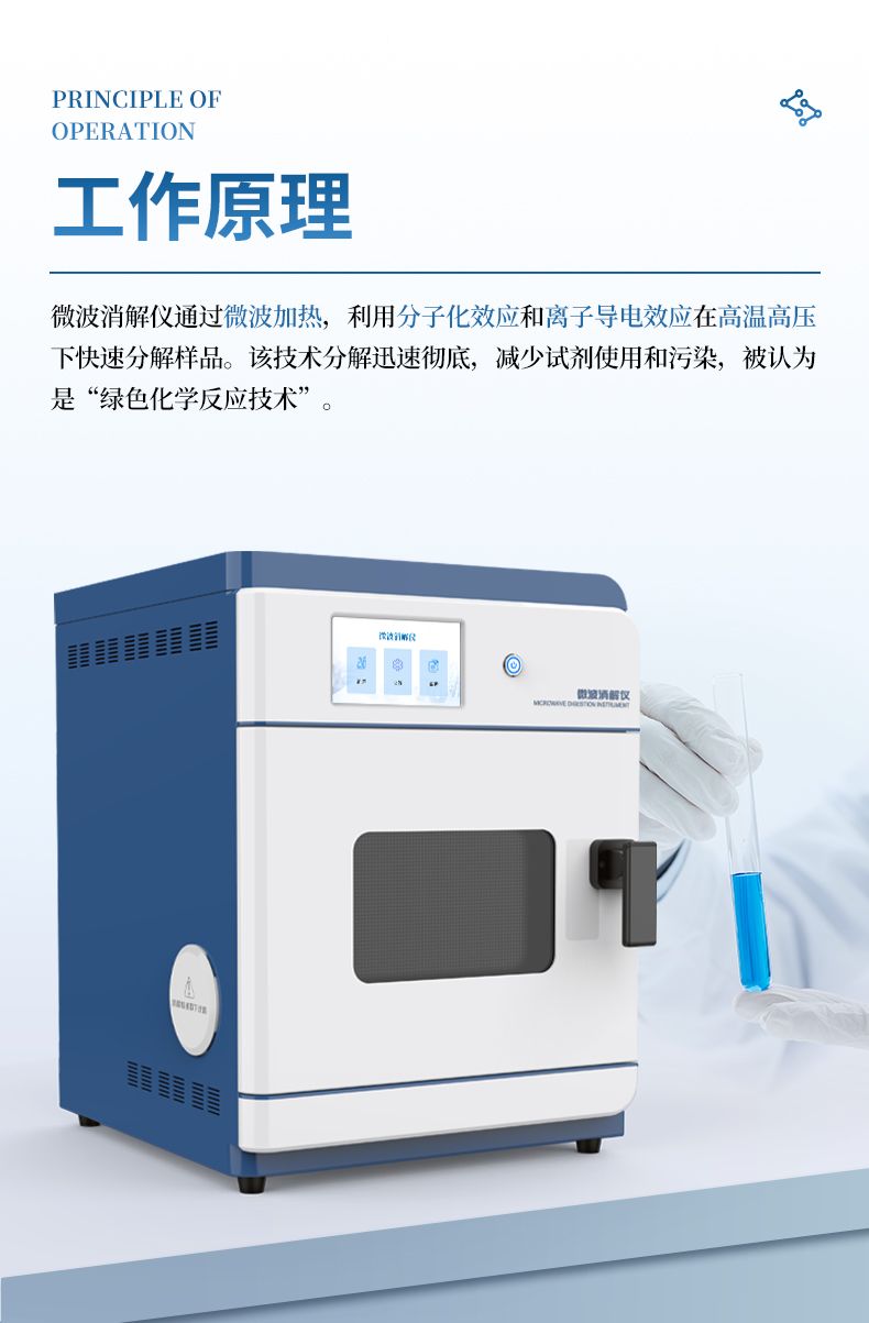 微波消解儀通過微波電磁波的直接加熱作用,使樣品在高溫高壓下快速分解。其加熱原理主要通過分子化和離子導電效應實現:
