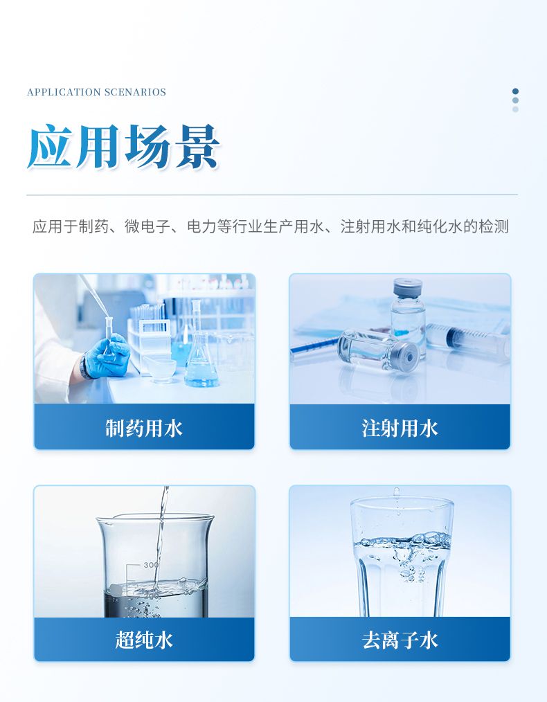 3、在線監測制藥工業的制水系統、半導體工業的超純水制備系統和晶片工藝過程、電廠去離子水制備過程等。