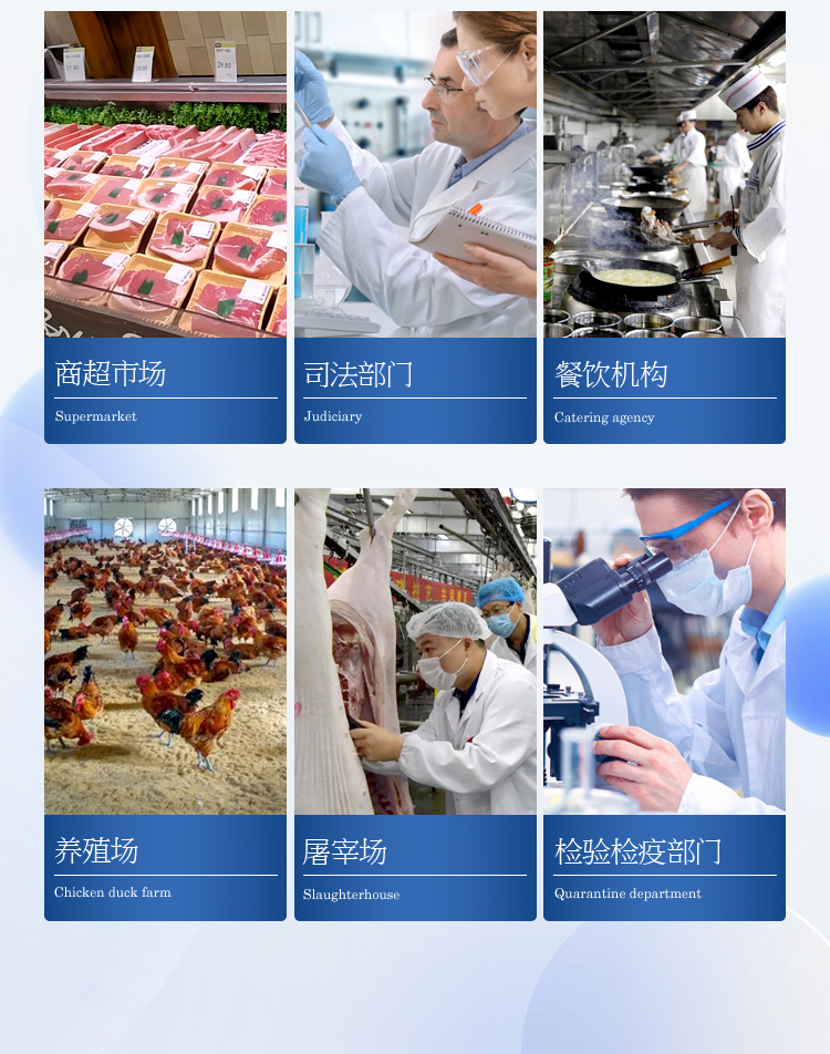 該多功能食品安全檢測儀為集成化食品安全快速檢測分析設(shè)備,廣泛應(yīng)用于食藥監(jiān)局、衛(wèi)生部門、高教院校、科研院所、農(nóng)業(yè)部門、養(yǎng)殖場、屠宰場、食品肉產(chǎn)品深加工企業(yè)、檢驗檢疫部門等單位使用。