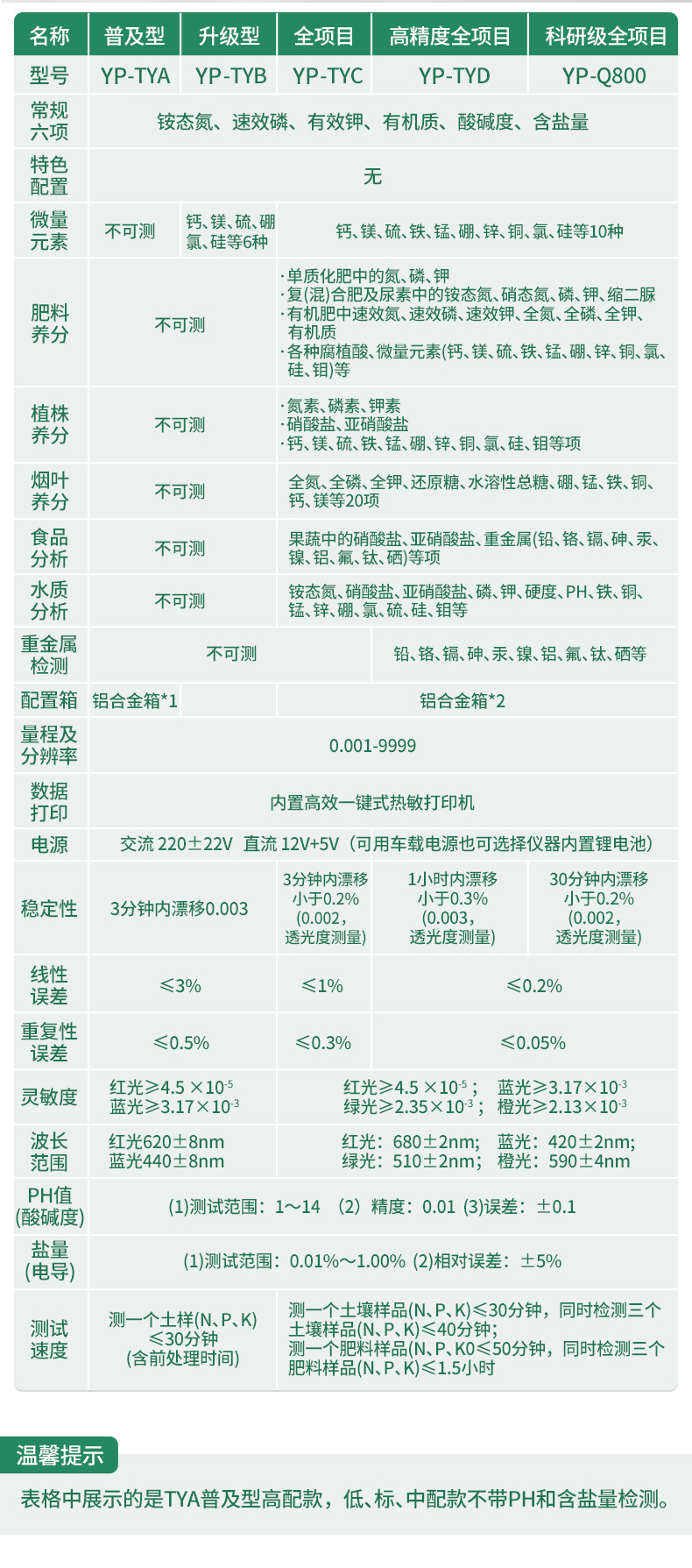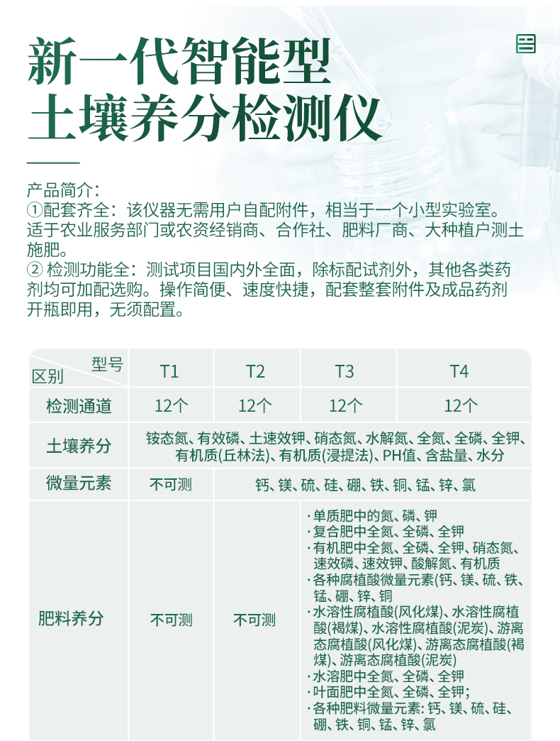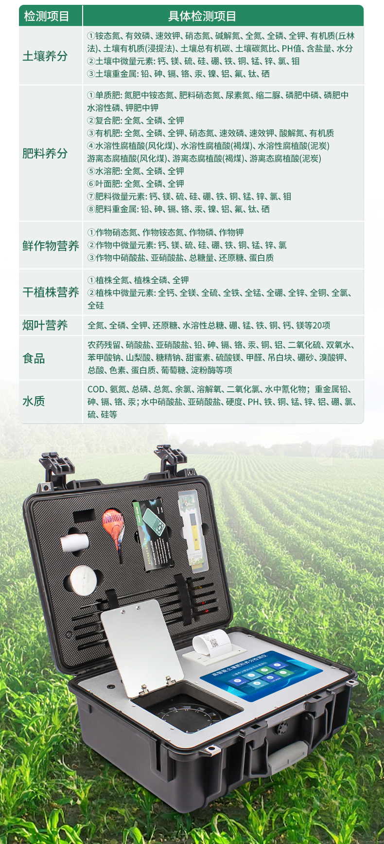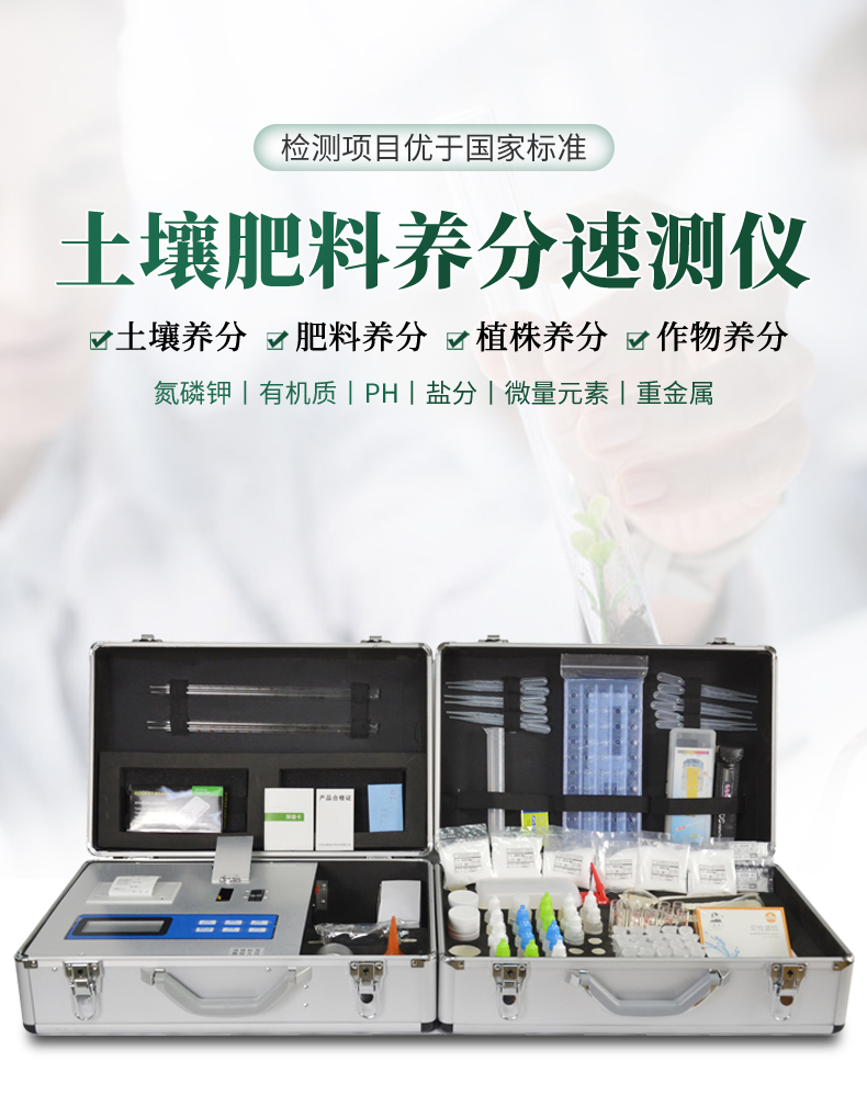 配套齊全:土壤養(yǎng)分速測儀該儀器集藥、器、儀為一體,攜帶方便,相當(dāng)于一個小型實驗室。適于農(nóng)業(yè)服務(wù)部門或農(nóng)資經(jīng)銷商、肥料廠商測土施肥和鑒別肥料真假。