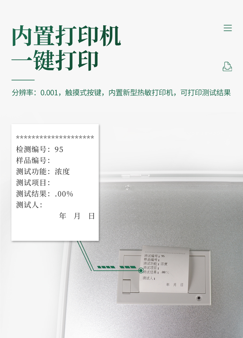 3、分辨率:0.001,觸摸式按鍵,內(nèi)置熱敏打印機,可打印測試結(jié)果。