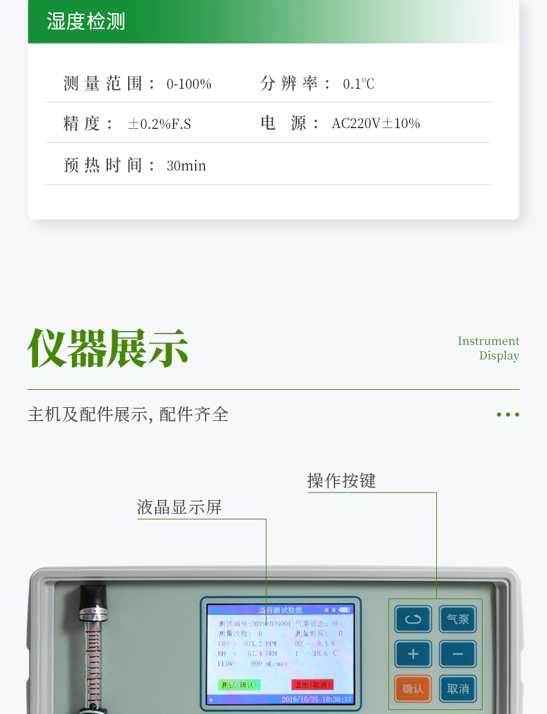 加入了溫度調(diào)節(jié)的雙波長紅外二氧化碳分析器,二氧化碳測量不受溫度變化影響,具有穩(wěn)定、精度高,反映靈敏,1秒鐘之內(nèi)就可以完成二氧化碳差值采集。