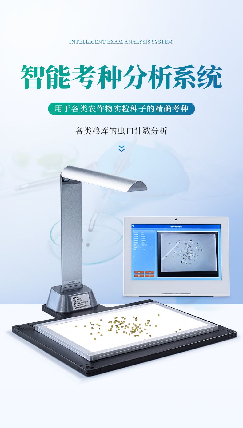 智能考種系統由1600萬高拍儀和背光裝置組成。背光裝置采用的是高亮LED燈,外邊框使用鋁合金材質制成。軟件采用先進的圖像處理技術,根據距離變換原理、形態學、凸包檢測等技術綜合設計的一款嵌入式軟件。該設備主要應用在農業領域的田間作物測產及考種等方面,通過高拍儀拍攝的照片,軟件自動計算種子數量,種子的面積、周長、長度、寬度、長寬比等數據,根據天平所得的重量與種子的數量自動計算出千粒重;以列表和圖形的方式輸出結果,便于用戶查看與分析研究。本產品也可以手動對作物種子數量修正以確保計數精度、對數據進行保存,并且可以查看數據報表,最后可以將數據以Excel格式導出。