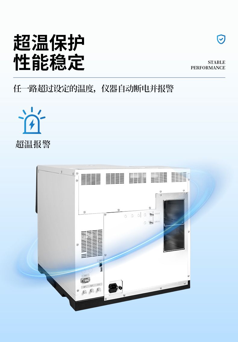 ●  載氣具有壓力保護功能,氣體壓力低0.4mpa時儀器自動切斷電源有效保護色譜柱使用安全。