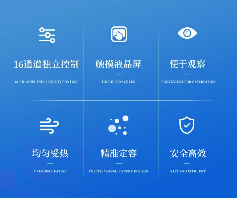 l 采用比熱容大的水作為導(dǎo)熱媒介,每個(gè)孔位的溫度一致,使樣品在濃縮過(guò)程保持高度平行性。