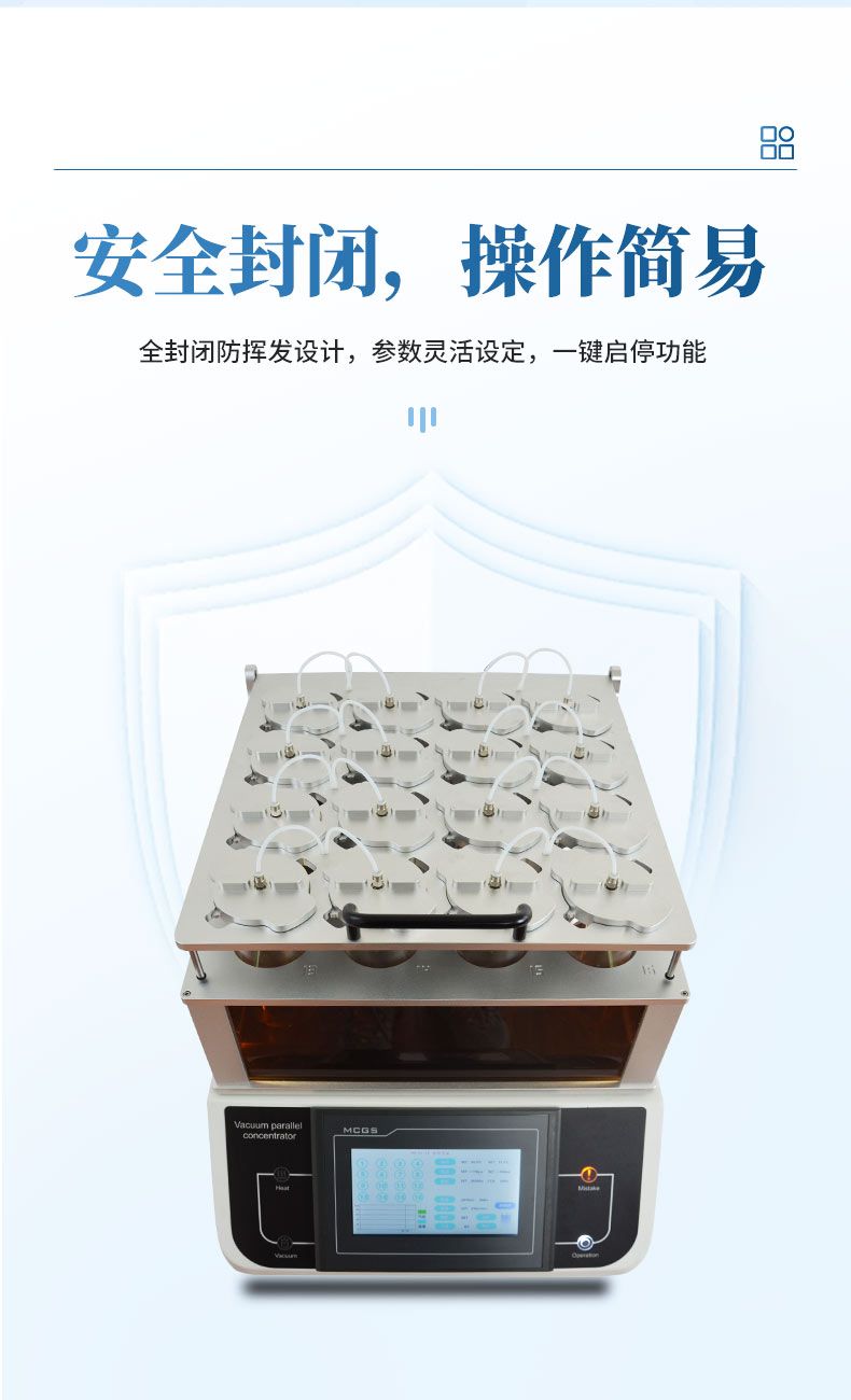 真空平行濃縮儀可對(duì)多個(gè)樣品進(jìn)行單獨(dú)或者集中密閉蒸發(fā)/濃縮,快速有效的回收溶劑,降低了多個(gè)樣品的總蒸發(fā)時(shí)間,增加了處理量,節(jié)省了操作實(shí)驗(yàn)時(shí)間和實(shí)驗(yàn)資源,平行蒸發(fā)儀安裝操作簡(jiǎn)單、使用靈活。由于處理?xiàng)l件高度一致,因此平行性也更好。平行蒸發(fā)儀主要用于化工、醫(yī)藥、生物、環(huán)保、檢測(cè)或其它行業(yè)中樣品的蒸發(fā)濃縮。