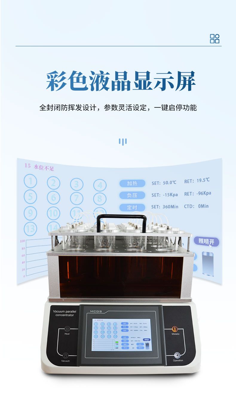 l 操作簡(jiǎn)便、安全:靈活的工作參數(shù)設(shè)定、方便的樣品置入/取出過(guò)程,易學(xué)易用;蒸發(fā)通道全封閉設(shè)計(jì)可避免有機(jī)揮發(fā)組份對(duì)儀器及操作人員的傷害。